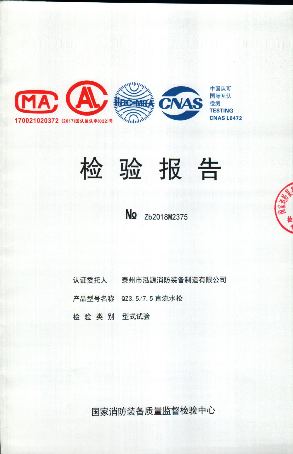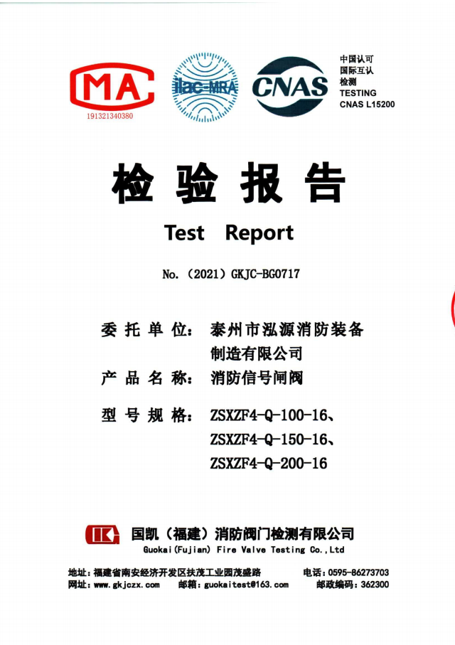 啟真法蘭消防信號閘(zhá)閥ZSXZF4-Q檢驗(yàn)報告