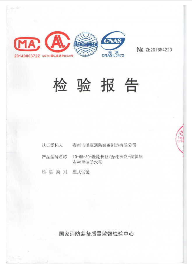 啟真10-65-30滌綸長絲滌綸長絲-聚氨酯襯裏消防水帶